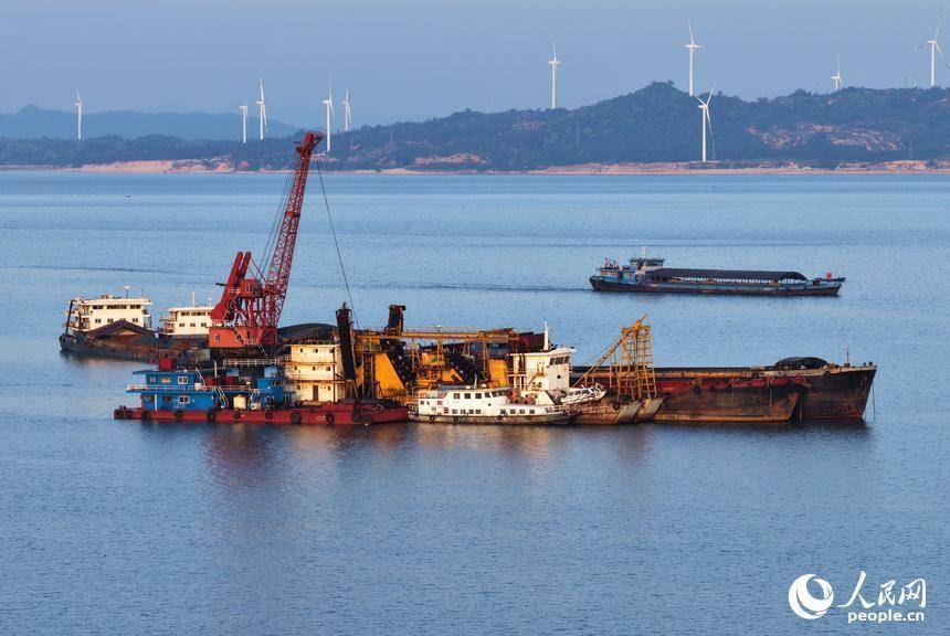 近日,庐山市鄱阳湖落星墩附近水域,船只穿梭,一派繁忙。人民网记者 毛思远摄